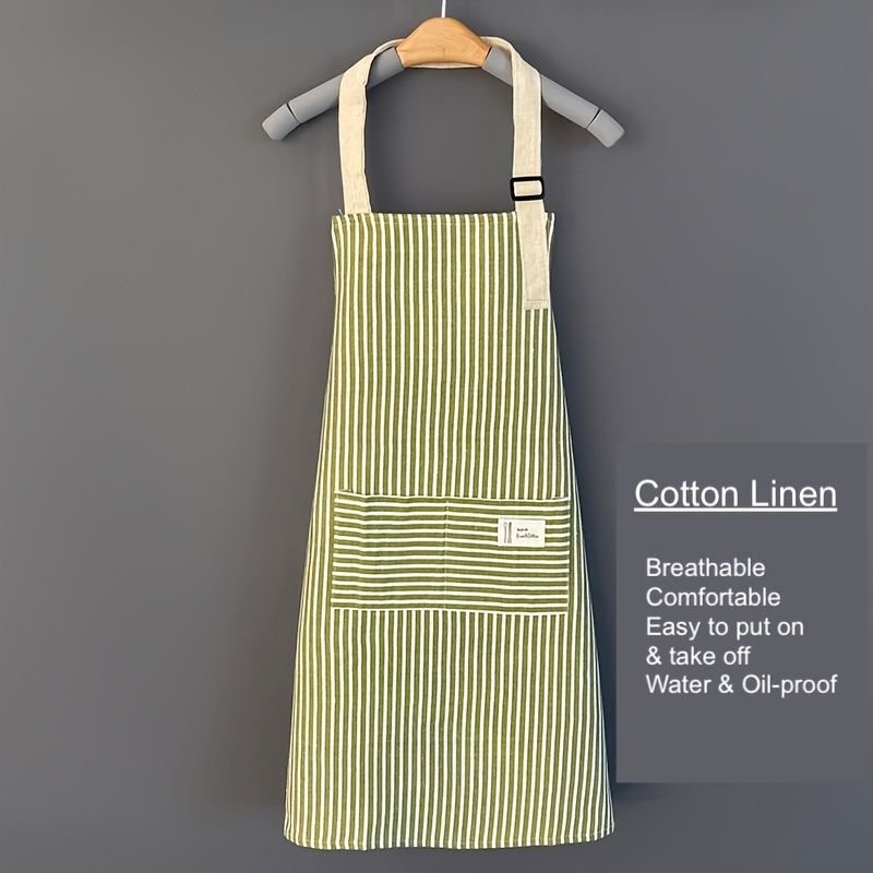 1pc Adjustable Kitchen Cooking Apron Cotton And Linen Machine Washable With 2 Pockets