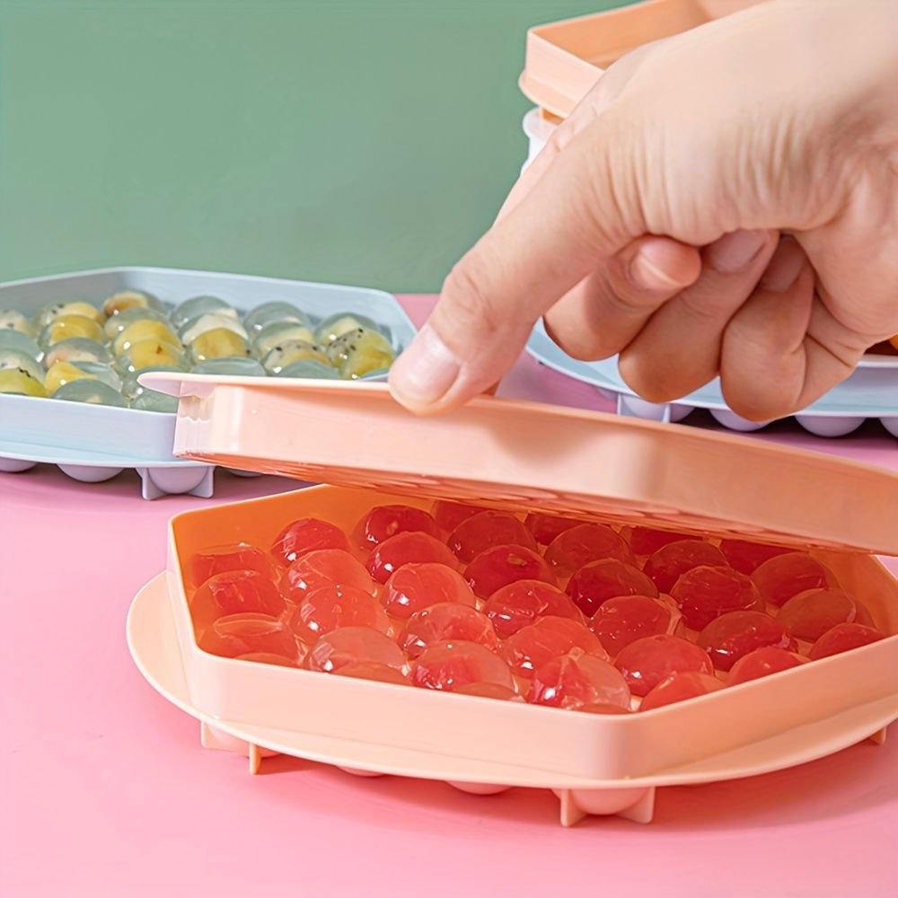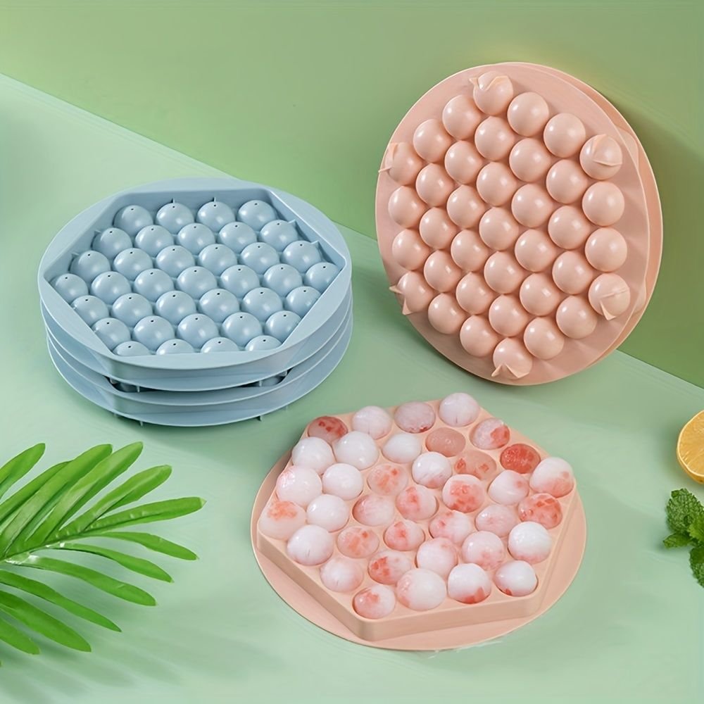1pc; Hexagon Round Ice Cube Tray With Lid; Mini Circle Ice Ball Maker Mold For Freezer; 37pcs Sphere Ice Chilling Cocktail Whiskey Tea & Coffee