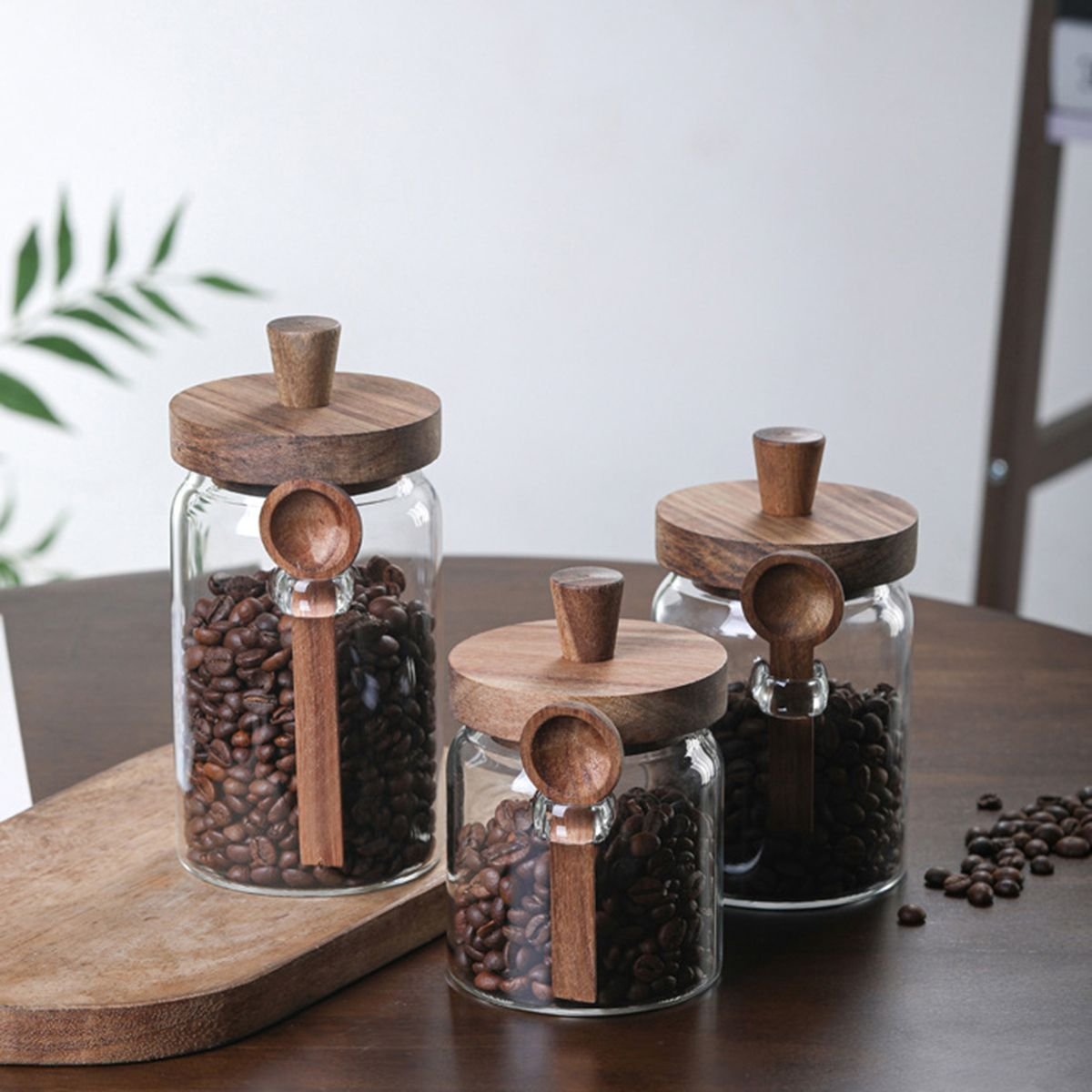 Home > 3 Pcs Glass Coffee Jars with Spoons, Candy Jars, Biscuit Jars, Storage Jars, Tea Jars, Snack Jars, Seasoning Jars, Salt Jars, Pepper Jars