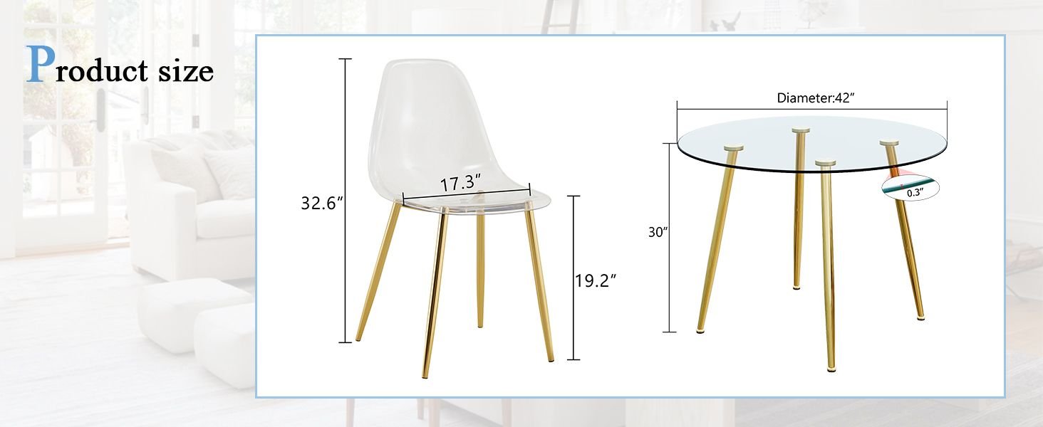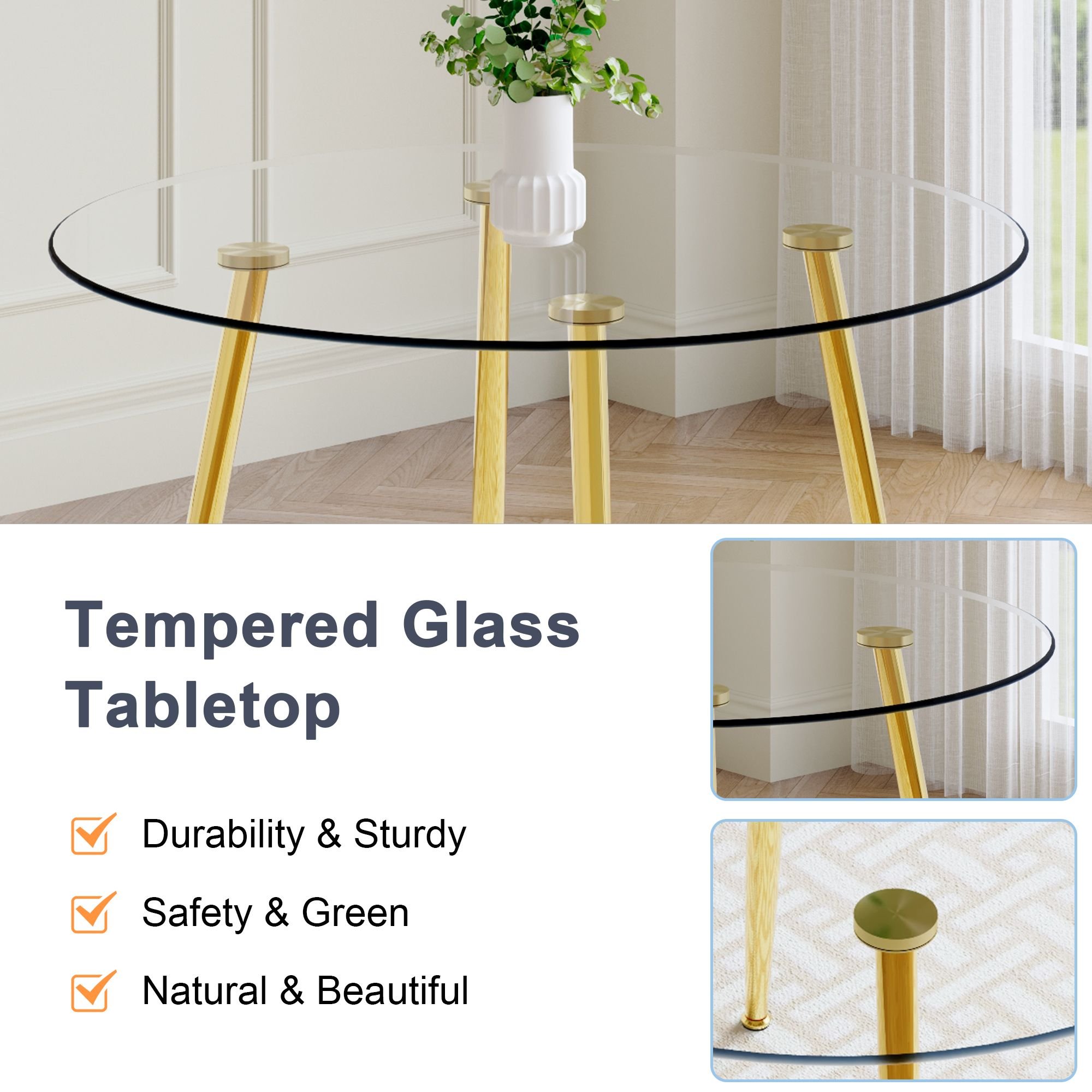Modern Minimalist Style Round Clear Tempered Glass Table with Gold Metal Legs