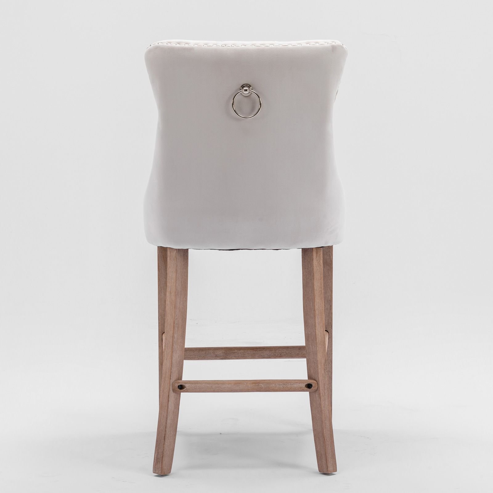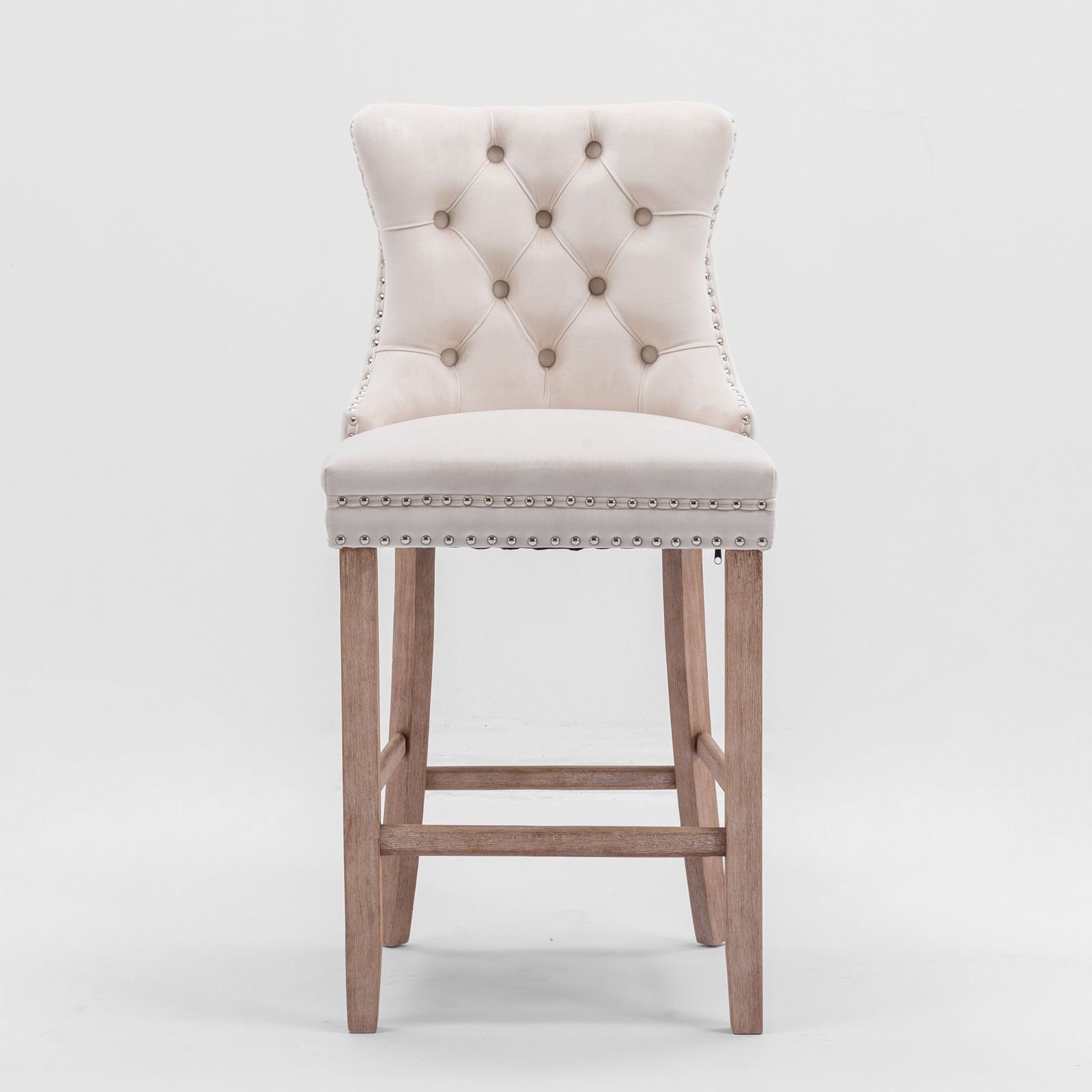 Contemporary Velvet Upholstered Barstools with Button Tufted Decoration and Wooden Legs, and Chrome Nailhead Trim, Leisure Style Bar Chairs,Bar stools