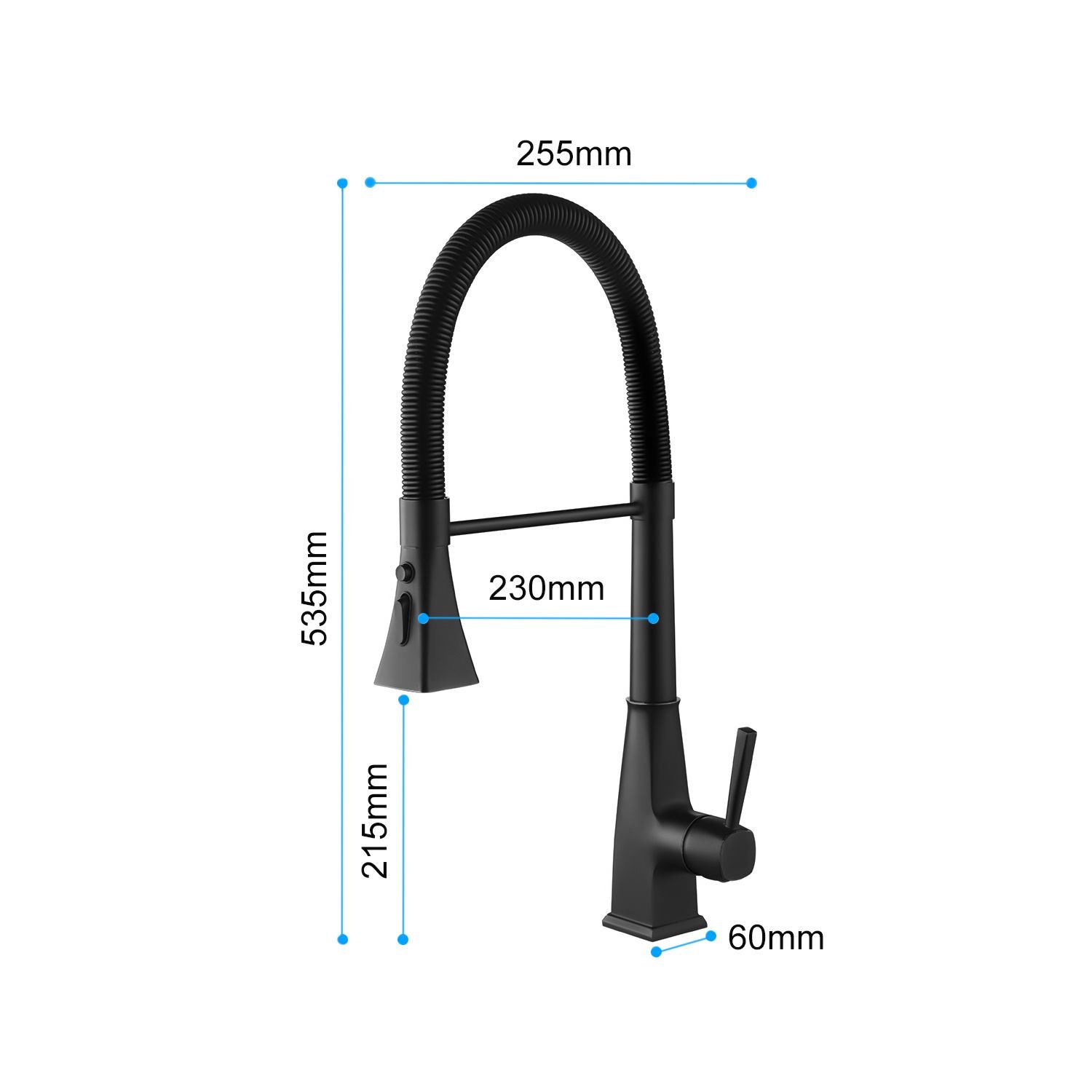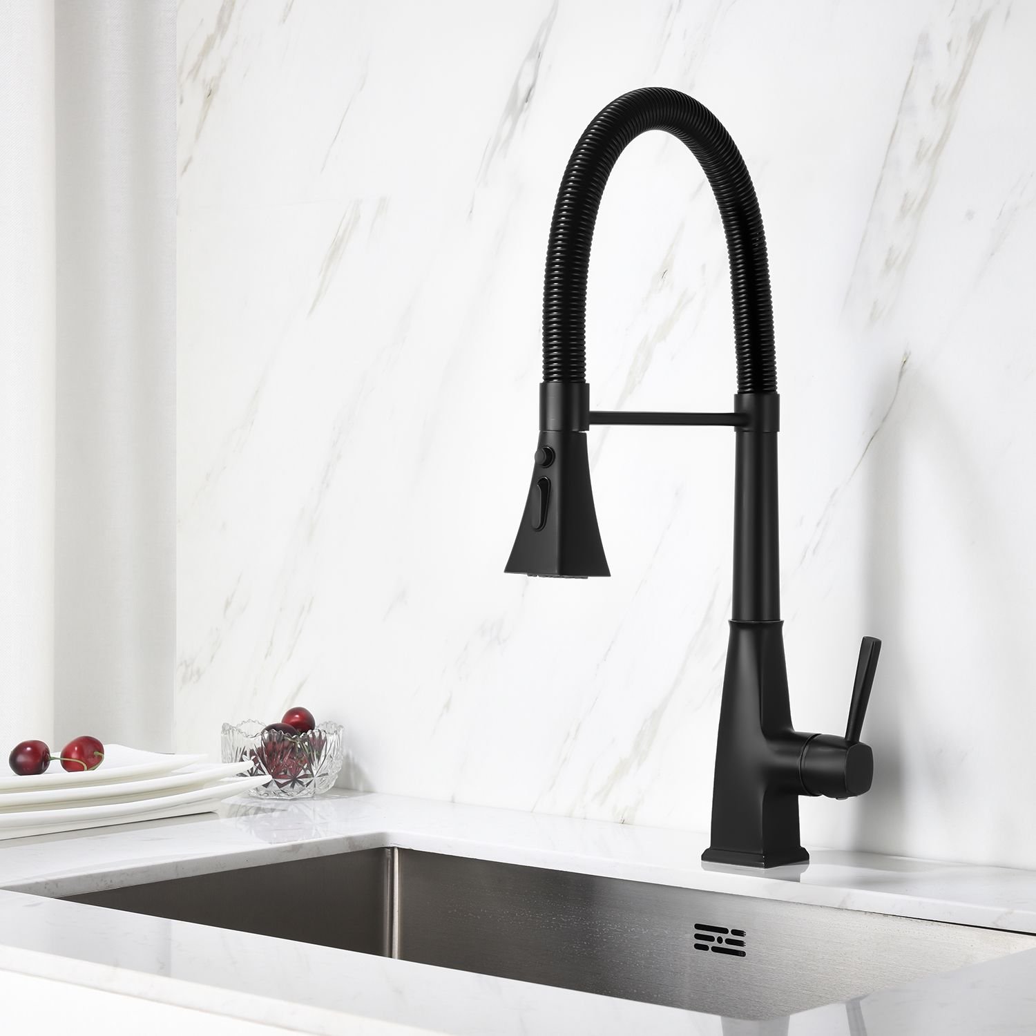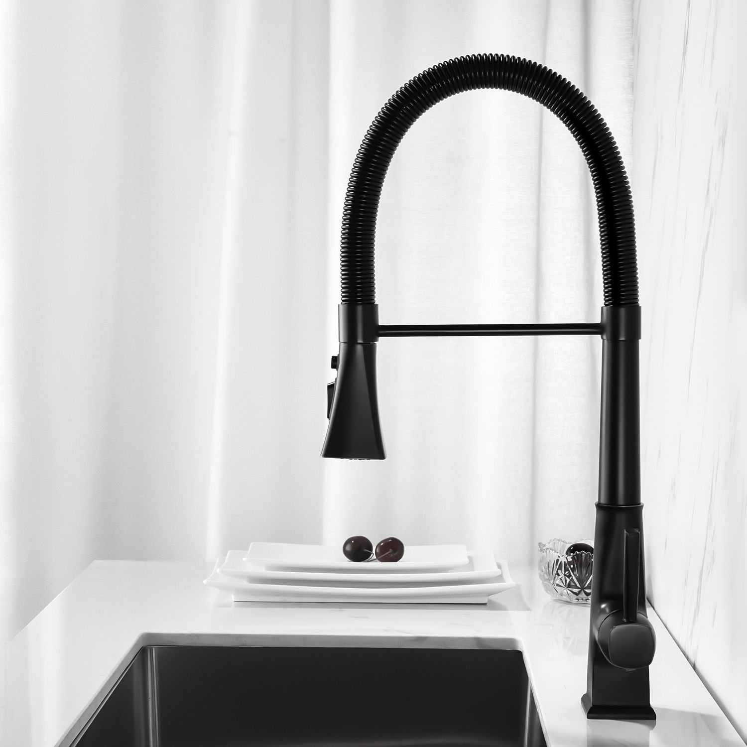 The kitchen faucet with pull-down sprayer has a simple and stylish design that easily matches most sinks. Two water outlet functions (stream, spray) to meet your various water use situations. The high-arc nozzle rotates 360 degrees to provide all-round cleaning, and the single-handle design allows easy control of water temperature and flow rate. For daily cleaning, just clean the faucet with a rag and it will look like new.
