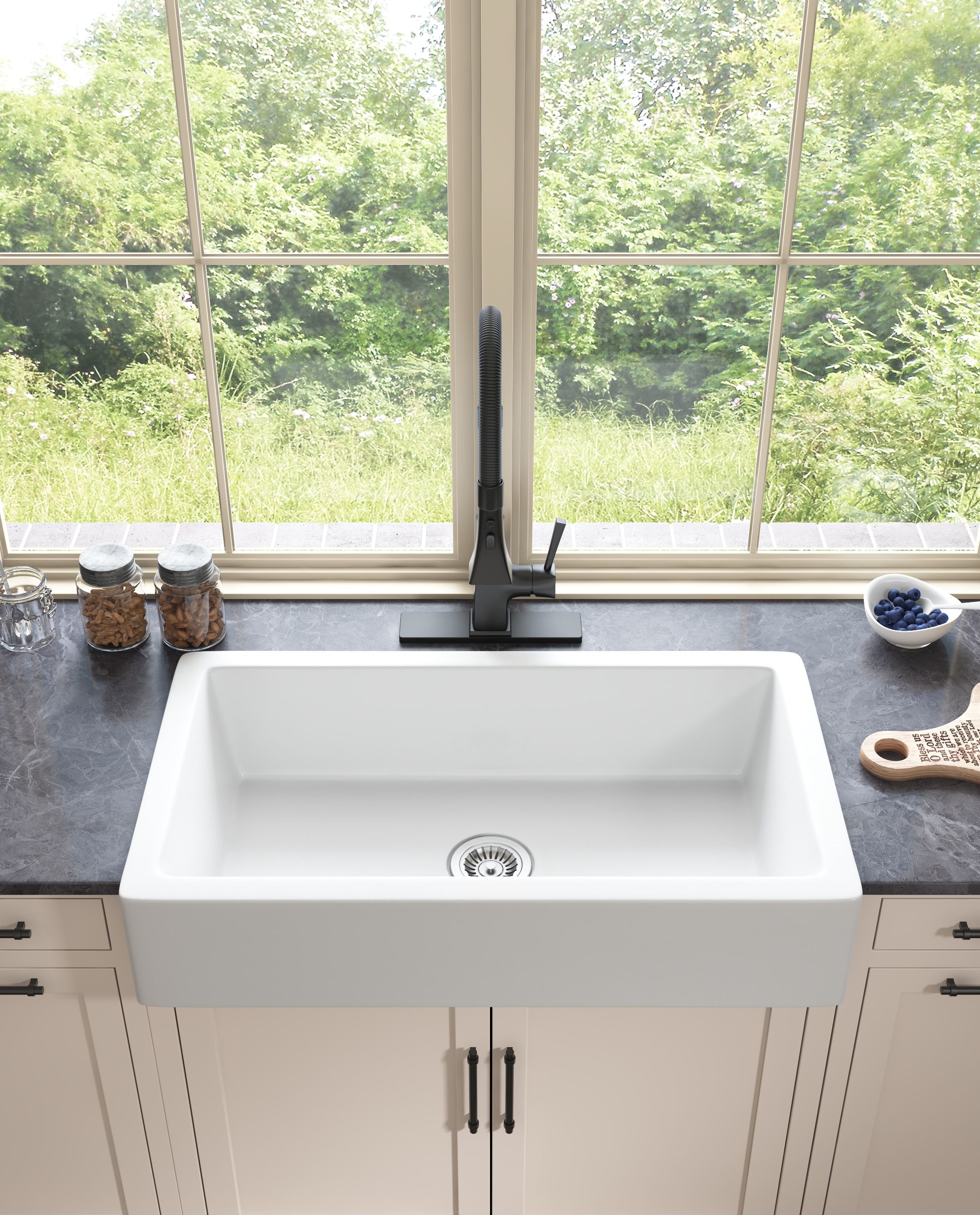 The pull-out spray head is designed to fit in a variety of sinks, and the high-arc nozzle rotates 360° to make your water use easier and more convenient.