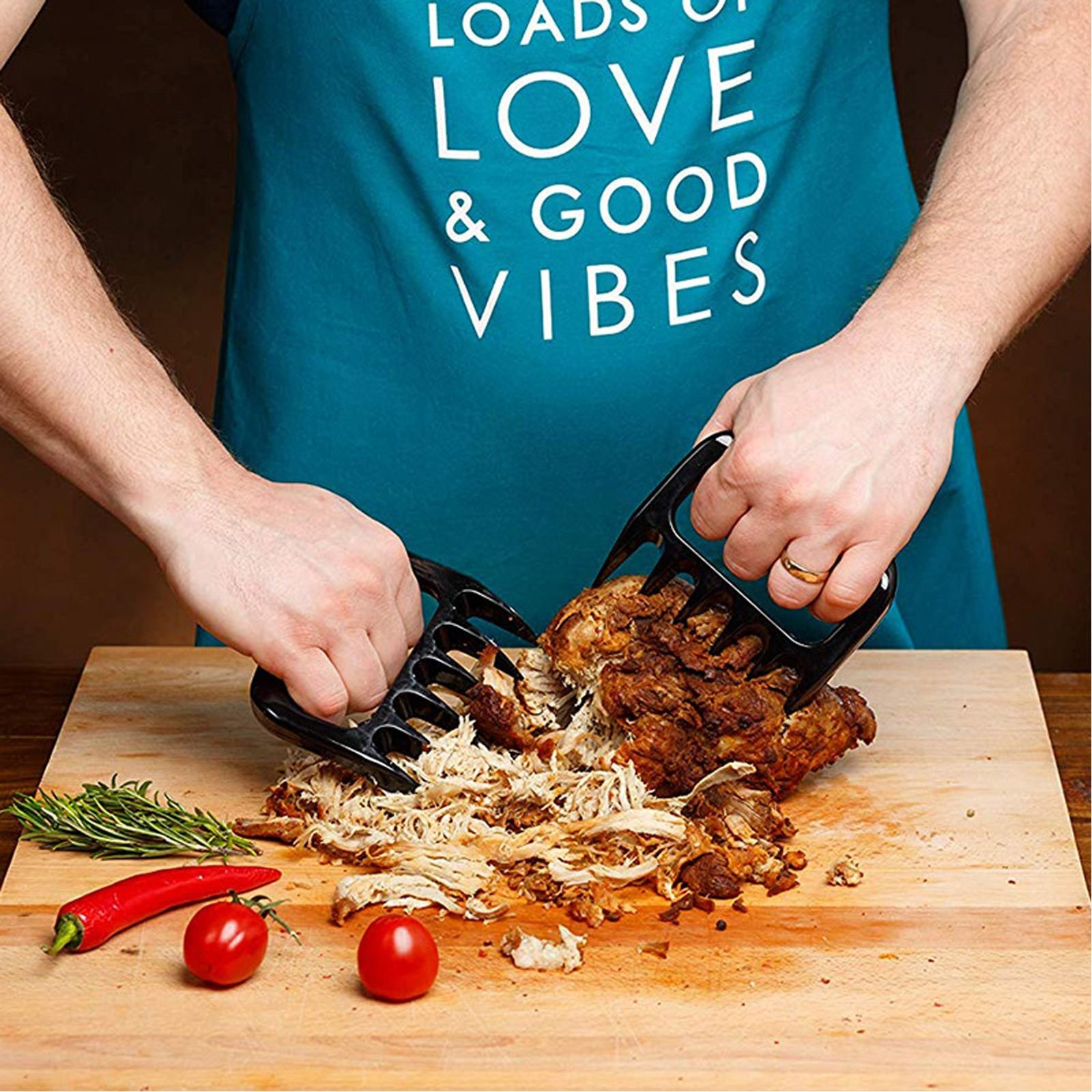 Pulled pork shredder claws the special design allows for a comfortable grip while the teeth let you shred to your preferred consistency.