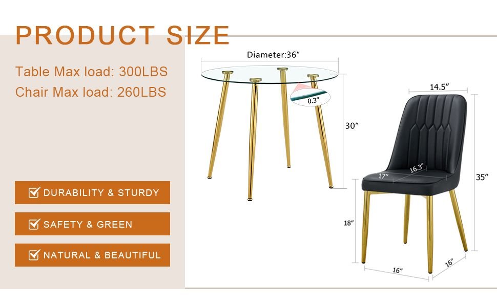 Sturdy and Durable Structure: The tight integration of the metal frame and glass top ensures the stability and durability of the dining table.