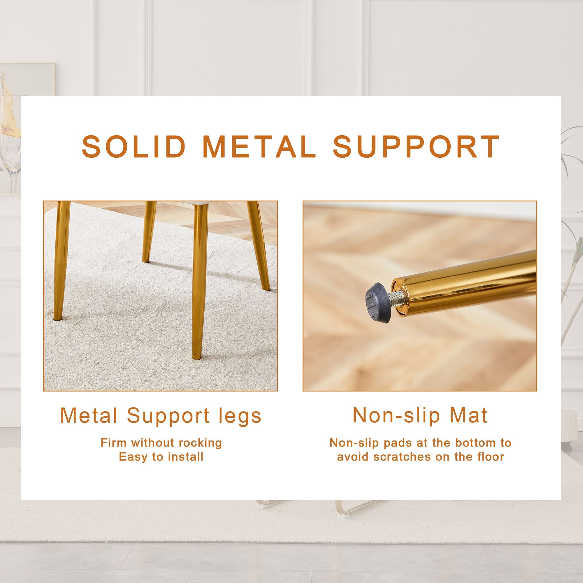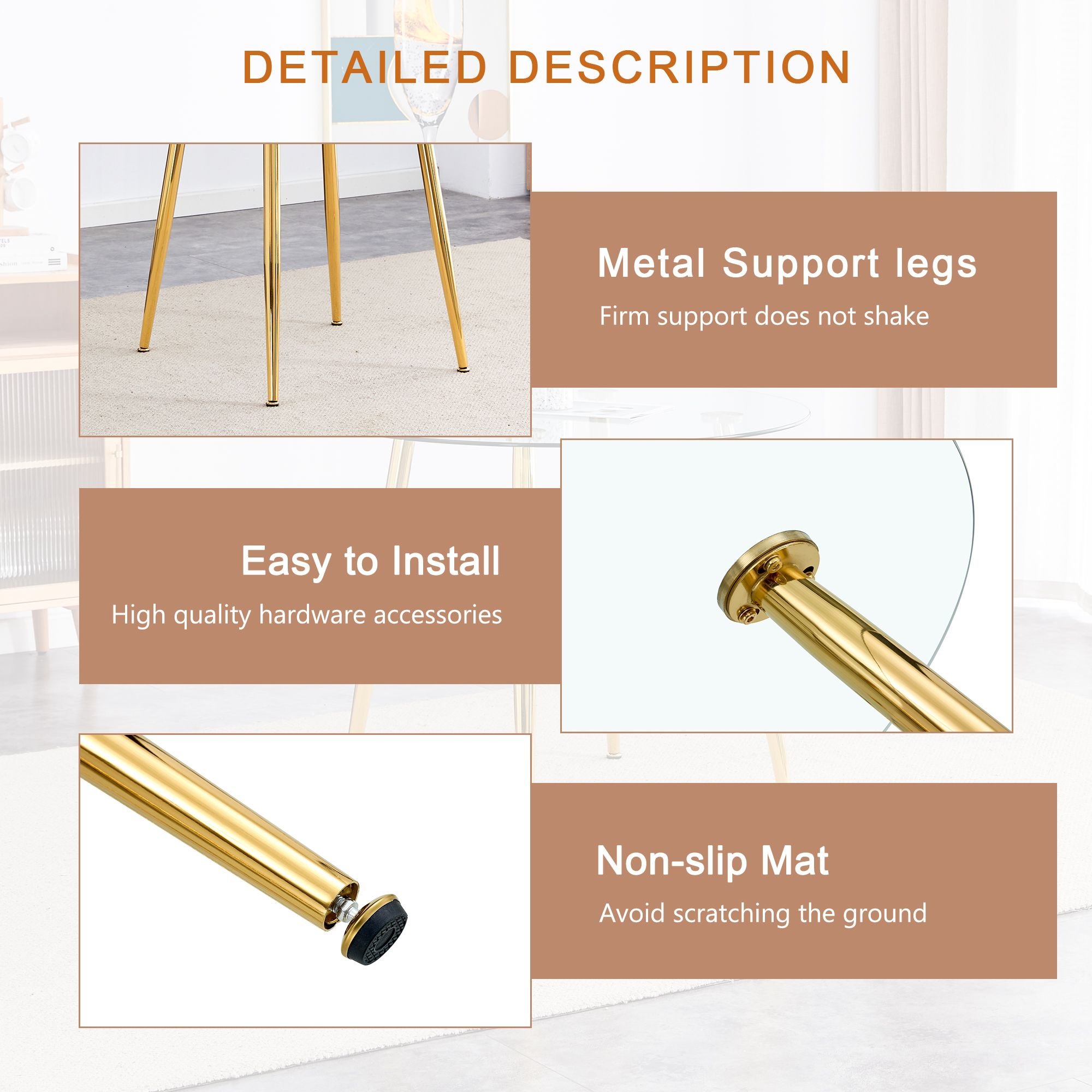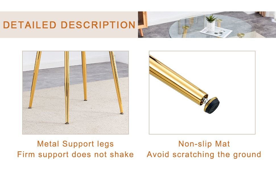 Gold Metal Frame: The gold metal frame adds a sense of luxury to the set while ensuring the stability and durability of the dining table.
