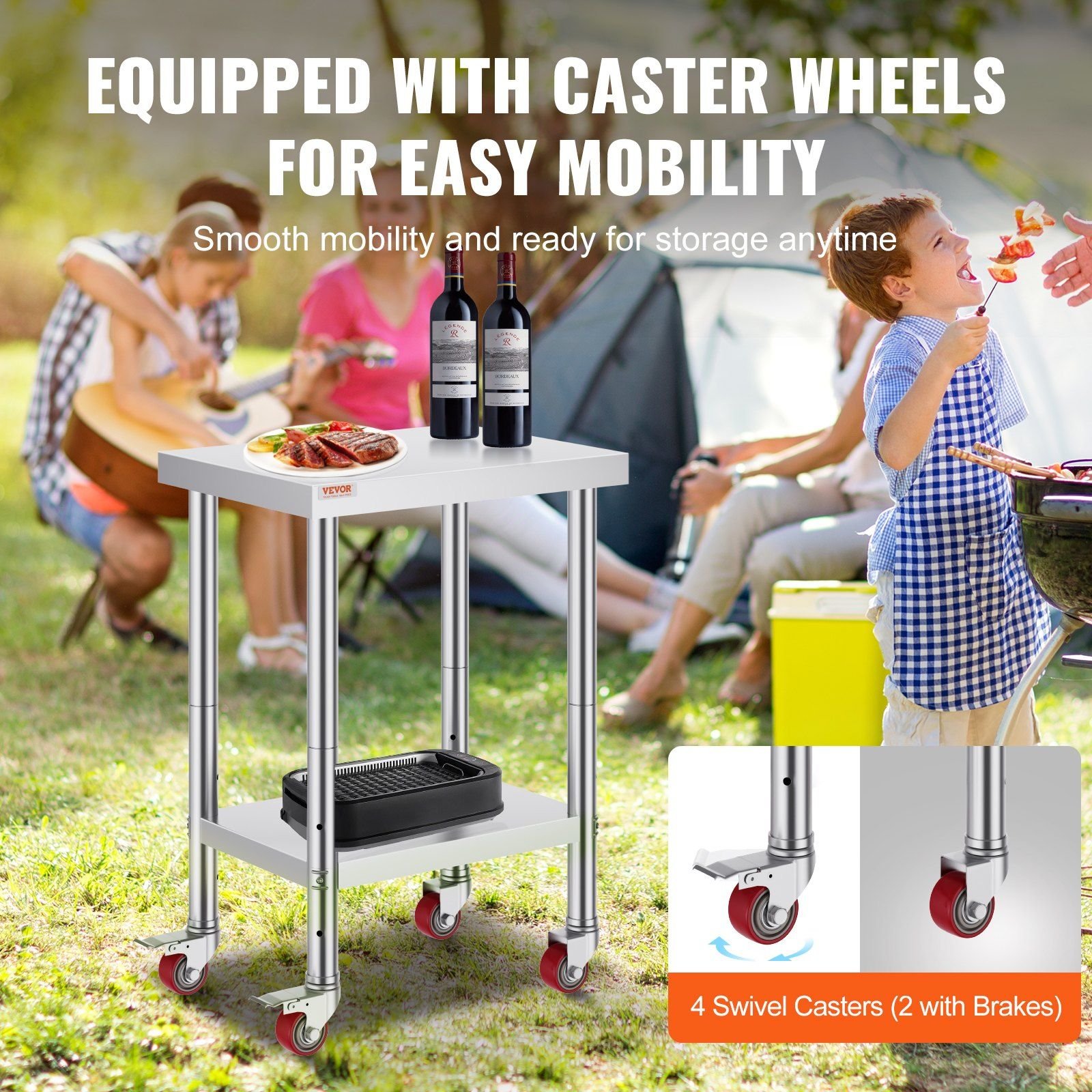 Home > VEVOR 24x18x34 Inch Stainless Steel Work Table 3-Stage Adjustable Shelf with 4 Wheels Heavy Duty Commercial Food Prep Worktable with Brake for Kitchen