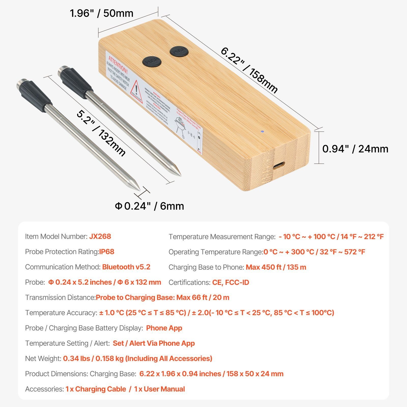 Home > VEVOR Wireless Meat Thermometer Bluetooth Meat Probe Two Probes for Cooking